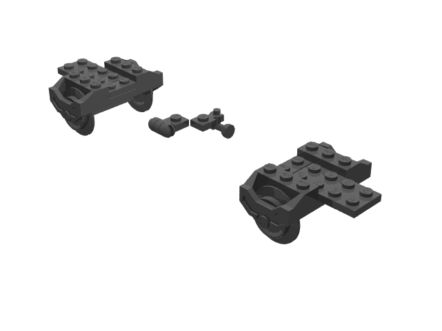 | 1 | 2 Black 298.DAT Lever Small Base 1 Black 4081.DAT Plate 1 x 1 with Clip Light 1 Black 4085.DAT Plate 1 x 1 with Clip Vertical 2 Black 3023.DAT Plate 1 x 2 2 Black 3020.DAT Plate 2 x 4 1 Black 4599.DAT Tap 1 x 1 2 Black 2878.DAT Train Wheels 2 |