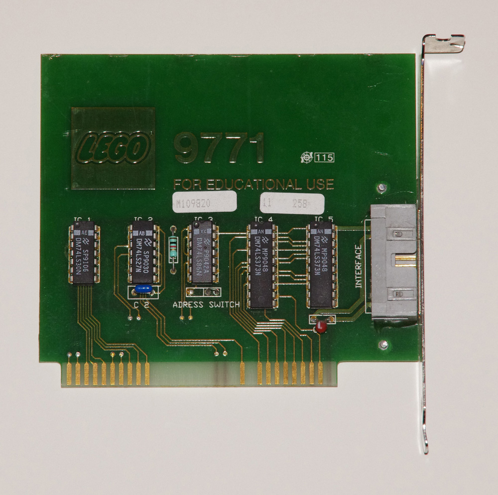 The LEGO Technic Interface A system consists of the Interface itself along with a power supply, a cable and either an IBM or Apple interface card. Also required were IBM (DOS) or Apple software diskettes including LEGO TC Logo or Logo Lines. I am very much interested in the IBM (DOS) software, if anyone has it for download or even the original diskettes.