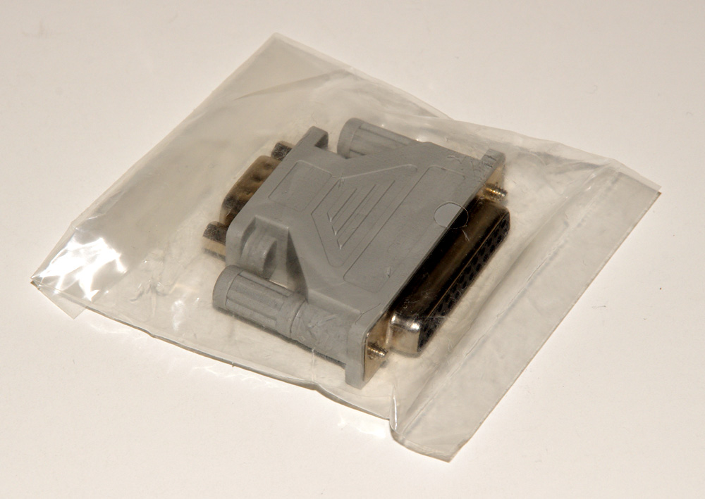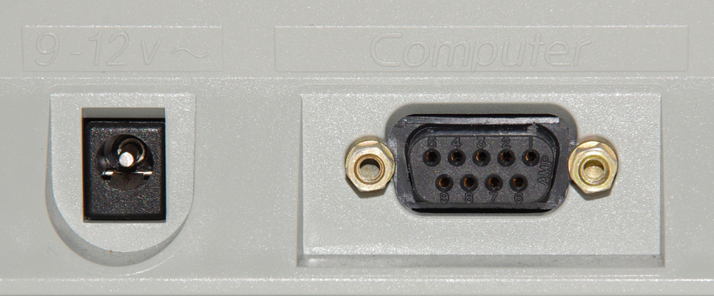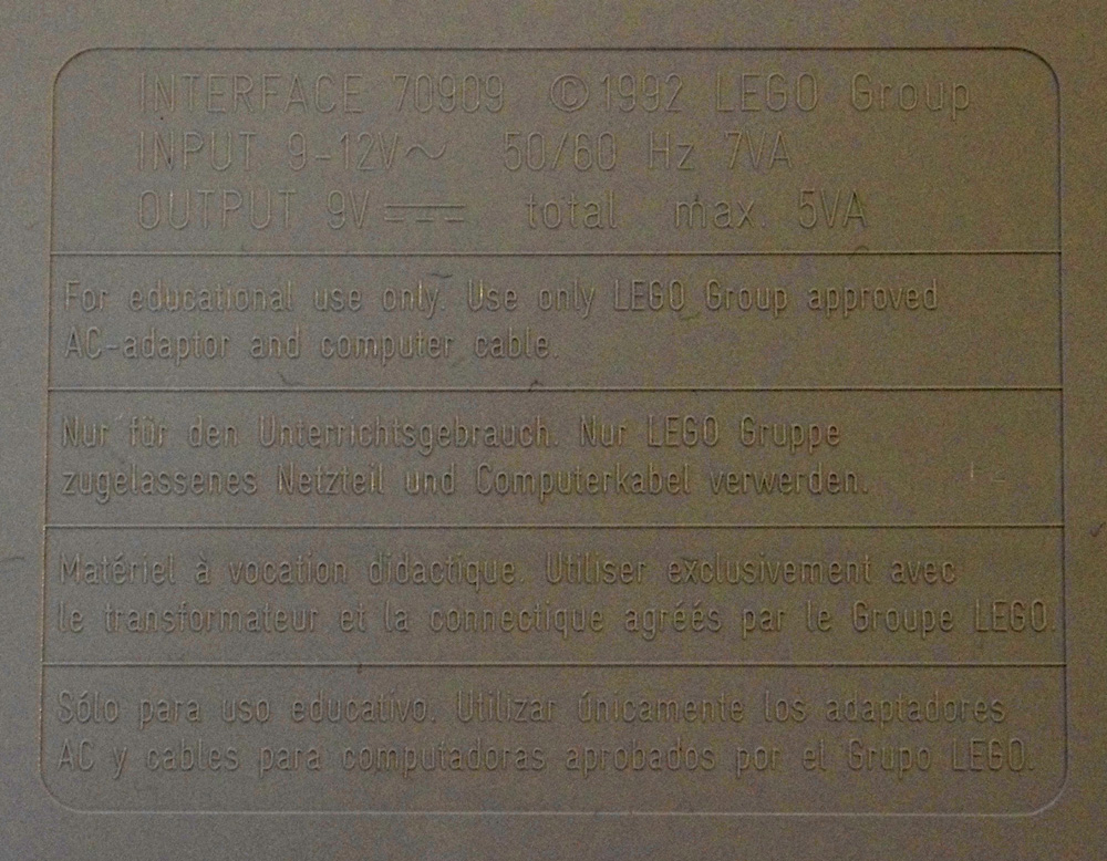 The LEGO Control Lab Interface B consists of the Interface itself along with a Power Supply, and a 9-Pin RS-232 serial cable.