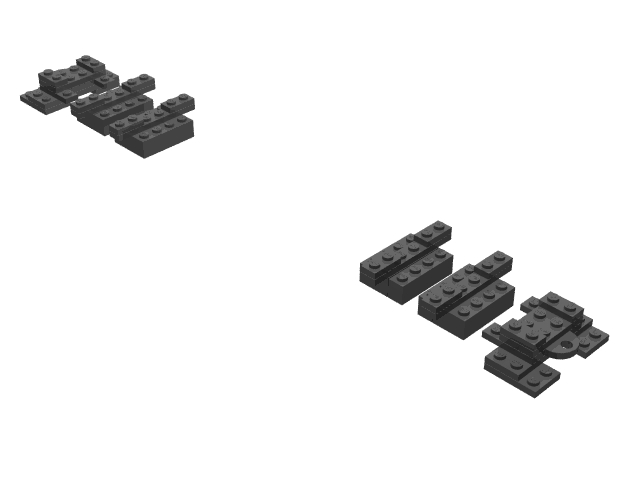 | 2 | 12 Black 3023.DAT Plate 1 x 2 4 Black 3666.DAT Plate 1 x 6 2 Black 3020.DAT Plate 2 x 4 |